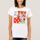 Este divertido diseño de camisetas muestra un dibujo de arte pop de una mujer que usa puntos de polka verdes y blancos con una burbuja de habla que dice: "Una casa limpia es un signo de una computadora rota". Sus cejas alzadas, el pelo perfectamente peinado y los labios rojos rubíes le dan un aire autoritario. La mujer y la burbuja del pensamiento están en un fondo de puntos polka rojo y blanco.