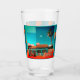 Una foto colorida de un pueblo español con un edificio tradicional, una luna creciente y una palmera. Valencia, Alicante.