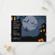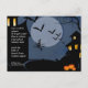 Esta divertida postal de invitación de Halloween tiene un fondo de cielo azul oscuro con una gran luna blanca, 3 lámparas Jack-o, 2 casas embrujadas, murciélagos y una bruja que vuela a través de la luna! Tu texto va contra la casa negra de la izquierda para poner el humor espeluznante derecho.