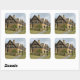 Pegatina de fotografía de recuerdo con las casas de Shakespeare con entramado de madera en el pueblo de Broadway, en Cotswolds, Inglaterra, Reino Unido.