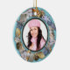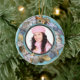 Navidades de cerámica redonda ornamento de playa con una plantilla fotográfica en el centro. Un toque tropical para personalizar añadiendo nombre, vacaciones y fecha a la parte trasera, que tiene una imagen de dólar de arena. Añadir una imagen con la opción de plantilla sencilla. En todo el borde exterior se muestran muchas imágenes tropicales de las conchas marinas, como la pez estrella, los erizos de mar, los relámpagos y más.