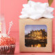 Foto pegatina de las casas de canal de Ámsterdam en estilo tradicional al lado de un puente sobre los canales Prinsengracht y Brouwersgracht iluminados al atardecer durante la Hora Azul en los Países Bajos.