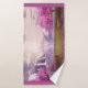 Toalla con una imagen escénica de un pacífico lago morado. Rodeado de cerezos y cascadas.
