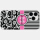 Bandas modernas monogramadas de color rosa, negro y blanco con Funda para iPhone 14 Pro Max.