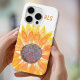 Sencillo, elegante y funcional, este estuche de teléfono girasol amarillo es la forma perfecta de proteger tu teléfono celular. Tiene una huella de un girasol color amarillo y naranja sobre un fondo blanco. Personalizar este estuche de teléfono cambiando el monograma. Acuarela original © Michele Davies