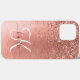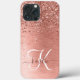 Personaliza fácilmente este diseño de estuche de teléfono de moda de moda con un purpurina de imitación rosa de oro brillante en un fondo metálico rosa de color dorado.