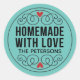 Un verde azulado pegatina "casero hecho con amor". Hazlo tuyo añadiendo tu propio nombre. Un toque de bonito para todos sus regalos caseros o hechos a mano. Hay otros colores disponibles. Diseñado para ti por Blackberry Boulevard.