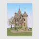 Representación digital 3D de un castillo de cuento de hadas en un prado verde, fondo azul del cielo