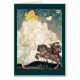 El príncipe montado en caballo blanco mira hacia un sendero que atraviesa las nubes hasta un castillo. Ilustracion de arte fino vintage del artista sueco John Bauer.