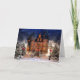 El castillo algo fantasmagórico se encendió todo para arriba para el navidad en una tarjeta de felicitación nevosa del día de fiesta del navidad del ajuste