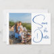 Si está buscando un Save The Date que no sea tan formal, este diseño es para usted. La parte delantera y la trasera tienen un fondo blanco. Hay un área para la foto, al frente, junto con el texto "Save the Date". En el texto de atrás puede guardar o personalizar.