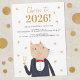 Ring in the New Year with a playful twist! This fun and whimsical invitation features an suave and sophisticated anthropomorphic golden cat dressed in a tuxedo and bow tie, holding a glass of celebratory Champagne against a gold, black, and white palette. Personalize all text to include your party details and set the tone for a celebration your guests won’t forget. Perfect for animal lovers, cat fans, and anyone hosting a lively New Year’s Eve gathering. Original art by Nic Squirrell.