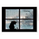 Una silueta de un gato se sienta en una ventana con una escena de invierno fría afuera. Pensando en ti sobre ella.