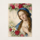 Remember your loved ones in prayer with this beautiful traditional Catholic religious image of the Blessed Mother Mary with roses, lilies and the Holy Rosary.