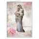 Esta es una hermosa tarjeta católica vintage de diseño personalizado de la Beata Virgen María sosteniendo al niño Jesús dormido así como un pequeño cordero que significa el sacrificio futuro de Nuestro Señor titulado L' Innocence .