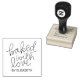 Este sello de goma presenta un caprichoso mensaje con letras a mano "horneado con amor" y puede ser personalizado con tu nombre. Perfecto para todo aquel que ame hacer y hornear en las vacaciones y más allá. ¡Una gran idea de regalo también!