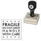Sello de caucho personalizado con "frágil, no suelte, manipule con cuidado" en la tipografía sans serif clásica con bordes estelares. Disponible en varios tamaños, con almohadillas de tinta adicionales disponibles en muchos colores.