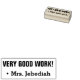 Este motivador diseño de sellos de goma incluye el motivador mensaje "¡MUY BUENO TRABAJO!" y el nombre de un profesor personalizado o educador. Podría ser utilizado por un profesor o educador al calificar el trabajo estudiantil, para reconocer que un estudiante ha hecho un trabajo excepcional.