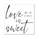 Diseño elegante y moderno de caligrafía "Amor es Dulce". La fuente del nombre de la pareja y la fecha son personalizables.