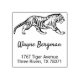 Este fino sello de goma de madera de dirección de devolución está hecho pensando en los amantes de los tigres. El diseño del sello cuenta con una ilustración vintage de un tigre en movimiento. El nombre y la dirección personalizados se imprimen debajo de la imagen en dos fuentes diferentes. El nombre se imprime en una escritura decorativa más grande, mientras que la dirección es una impresión limpia y fácil de leer.