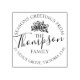 Sencillo contorno de arte círculo de arco nombre de familia con dibujo esquemático de la dirección de retorno de mistletoe sello de goma. Personaliza con tu propia dirección y nombre de familia, ideal para sellar publicaciones de Navidades. Dibujo y diseño original del perfil de la silueta de mistletoe de Sarah Trett. www.sarahtrett.com para www.mylittleeden.com en zazzle.