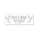 Sellos personalizados de dirección de devolución de caucho para invitaciones de boda, guardar las fechas y otros artículos de papelería y invitaciones. El texto rústico personalizado está emparejado con dos cánticos dibujados a mano para una linda y divertida apariencia de campo. También perfecto como regalo para novias, recién casados y para el cambio de hogar.
