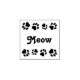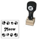 Una línea de cuatro huellas de pata recorre la parte superior e inferior de este sello de goma, mientras que el centro está lleno de un simple "Meow".