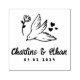Un encantador sello de goma personalizado con una elegante paloma con una flor con delicados detalles del corazón. Perfecto para añadir un toque romántico y significativo a invitaciones de boda, sobres, favores, tarjetas de agradecimiento y más. Personalizar con sus nombres y fecha para crear un keepsake único para su día especial.