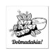 Hojas de uva rellenas con arroz y hierbas. Cortes de limón, eneldo, hojas de menta y chapuzón de tzatziki. texto personalizado.