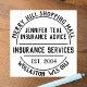 Sello de caucho de corredores de seguros. Sello de goma de los Servicios de Seguros. Nombre de la empresa, tipo de negocio, más Dos líneas de dirección en un efecto circular. Sello de caucho comercial para todo tipo de artículos de papelería, sobres, paquetes, etc. Marque su dirección de retorno de forma sencilla y elegante.