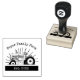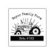 Sello de goma con un tractor y nombre de granja familiar personalizable y fecha de establecimiento.