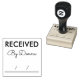 ¡Selle papeles de manera rápida y efectiva con un sello de goma de oficina personalizado profesional! Este práctico sello de escritorio personalizado presenta "recibido" con "por (su nombre)" en tipografía de letra cursiva elegante y líneas de fecha vacías para rellenar rápidamente a mano. Almohadillas de tinta adicionales disponibles en muchos colores.