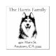 La imagen de Happy Siberian Husky dog divide el texto del personalizable. El cuadro de texto superior puede utilizarse para el nombre de la familia o de la empresa y el cuadro inferior para la dirección u otros detalles de contacto