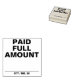 Este diseño básico y sencillo de sello de goma incluye los mensajes "PAID FULL AMOUNT" y una línea donde se puede escribir una fecha de pago. Tal vez podría utilizarse para indicar que se ha pagado íntegramente una factura o factura.