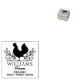 Este sello de goma de "Huevo Stamp" presenta un pollo con nombre y eslogan a medida.