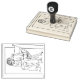 5 x 5 cm. Sello de caucho de madera, Color del cartucho de tinta = Ninguno, Orientación = Horizontal, Mango = Mango de madera