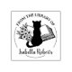 Este sello de goma "De la biblioteca de" presenta un libro, flores un gato y un nombre personalizado.