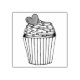 El sello de caucho presenta un original ilustracion de marca de un quequito con espuma, espolvorines y un corazón.