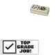 Este inspirador diseño de sello de goma presenta el mensaje de alabanza "TRABAJO DE ALTA CALIFICACIÓN!". También cuenta con una marca de verificación decorativa. Puede ser utilizado por un maestro, educador o tutor al calificar tareas, para reconocer que el estudiante ha hecho un buen trabajo.