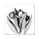 dibujo a mano hecho en un sello. Dibujo en blanco y negro de tulipanes, hecho en lápiz caligráfico de tinta