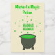 Esta impresionante hoja de etiquetas de botellas de vino contiene una imagen gráfica de un caldero gris. El caldero está lleno hasta la cima con una poción verde hecha por una bruja. La poción está saliendo del caldero y ha formado la palabra "burbuja" que aparece dos veces por encima del brebaje de aspecto venenoso.