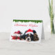 Spaniel Cavalier King Charles Tri Color Tarjeta de Navidad Deseos de Navidad con un sombrero de Santa bajo un árbol de Navidad