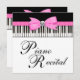 Elegante piano rosa, negro y blanco teclas de piano recital de piano y plantilla de invitación a eventos musicales. Este diseño funciona bien para eventos de recitales de corbata formal y negra, invitación sinfónica, orquesta, banda o cualquier otro evento de recitales o recaudación de fondos. Añade tus detalles al frente y al revés simplemente eligiendo el botón "Personalizar it!" para empezar a añadir los detalles del evento, el estilo de fuente, el tamaño y color del tipo de letra y la redacción. Tenga en cuenta que todos los diseños de invitación que encontrará en Zazzle son gráficos impresos sin joyas, arcos, arcos, piezas grabado en relieve o añadidas. com