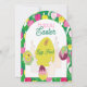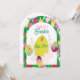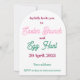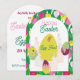 Conejitos lindos con huevos de Pascua en un fondo con patrón de tulipanes encantadores y ambiente festivo.