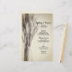 Personalice el menú de boda Country Farm en botella de leche con cebada seca con estilo rústico chic con los detalles de la comida que servirá en el almuerzo de la ducha de novia con tema de rancho rural, el brunch después de la boda o la cena de recepción de la boda en la fiesta del granero agregando la ensalada o primer plato, el plato principal o segundo plato y el postre o tercer plato. Personalícelo con los nombres de la novia y el novio, el lugar del evento y la fecha. Este encantador menú de boda personalizado presenta una encantadora fotografía en tono sepia en blanco y negro de una antigua botella de leche de vidrio llena de hierba de cebada seca y granos.