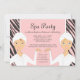 Uces par de chicas bonitos están mostrando apagado sus manicuras mientras que snuggled en sus trajes blancos de la felpa - todo listos por un día de cuidar en exceso en el balneario. ¡Una gran idea de la fiesta de cumpleaños para las adolescencias, los 'tweenes y los graduados! En sombras bonitas de rosado y de marrón con un fondo de las rayas del estampado de zebra del negro de la diversión.