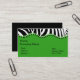 Cebra enrrollada en tarjeta de visita verde