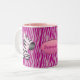 Cebras personalizadas lindas y taza rosada y blanca del falso estampado de animales rosado de la textura con dos pequeñas cebras rosadas caprichosas hermosas del dibujo animado y una placa de identificación para que usted personalice. Estas tazas elegantes y adorables hacen una moda única anunciaron el regalo para las adolescencias, los chicas y las mujeres de todas las edades. OBSERVE POR FAVOR: Todos los elementos se imprimen - TEXTURA NO REAL de la PIEL - esto son una imagen digital de la textura de la piel. Si usted necesita la ayuda que modifica su producto para requisitos particulares me entra en contacto con por favor a través de mi tienda y me placeré ayudar.