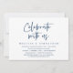 Tarjeta de invitación de boda íntima con tema de escritura informal azul marino moderno (Celebra con nosotros). Es perfecta para su cena y baile/fiesta de boda íntima y casual.