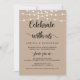 Hermosa tarjeta de anuncio de boda rústica moderna marrón kraft, luces de cuerda tema cottage de granja, tarjeta de invitación de boda (Celebra con nosotros). Esto es perfecto para la recepción de su boda y la fiesta de celebración después de la boda. Agregue sus detalles en fuente / letra coincidente.
